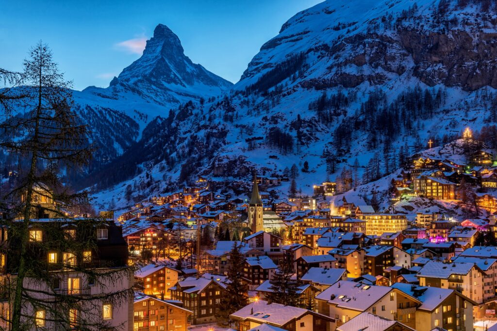 Floor‑to‑ceiling Matterhorn views, private hammam, and ski‑in access. In summer, trade skis for glacier hikes and fondue picnics at altitude.