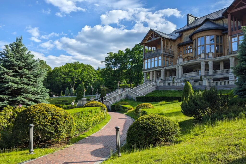 Turrets outside, contemporary calm within. Private organ recitals in a candlelit chapel and horse‑drawn carriage rides through the forest.